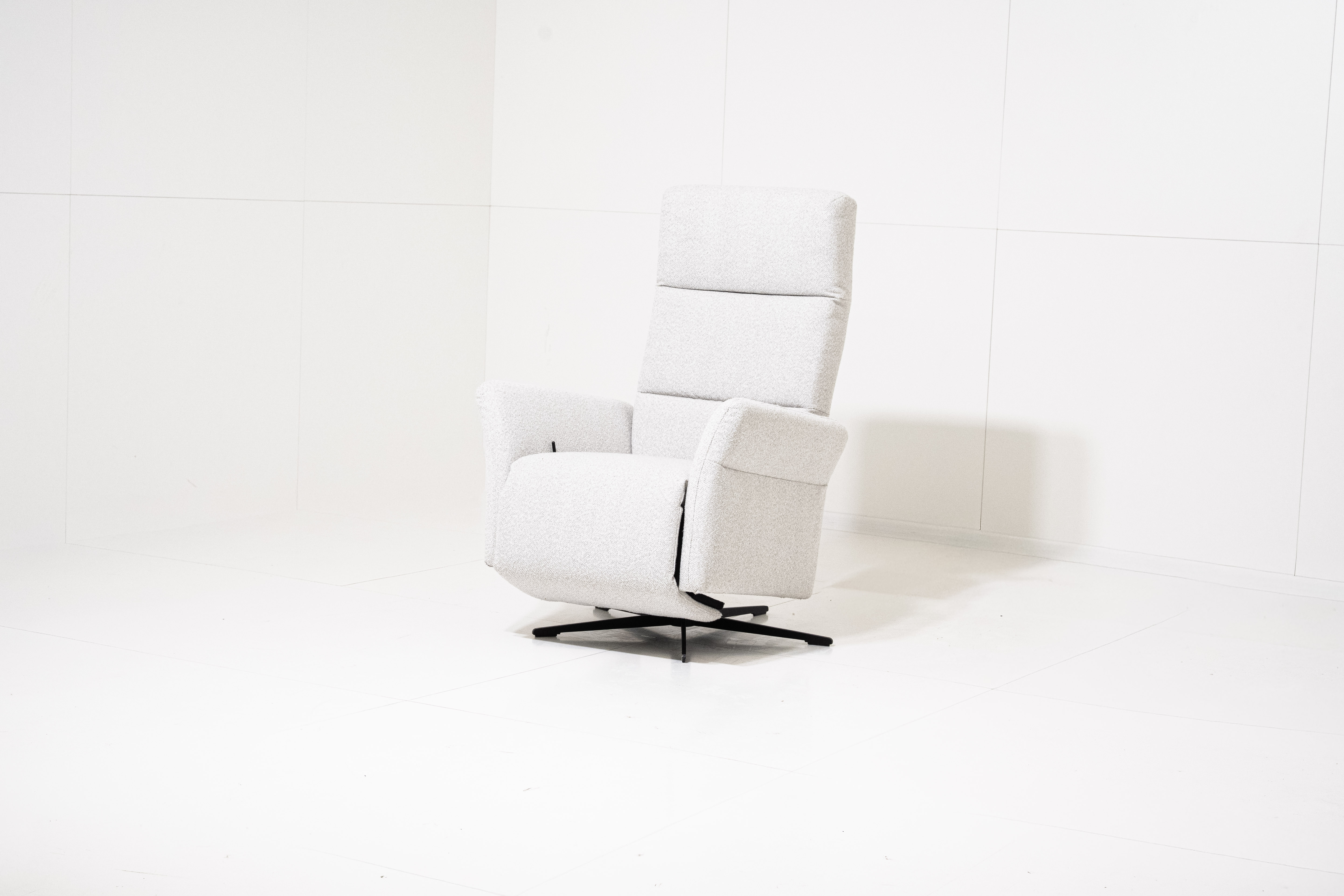 Krėslas sukasi aplink ir išsilanksto į pusiau gulimą padėtį.
